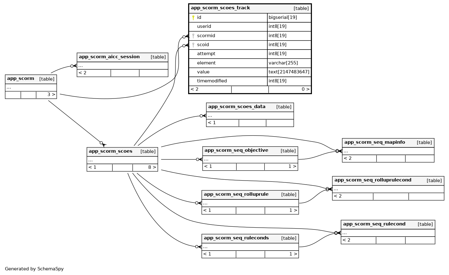 | app_scorscoetrac_usescosco_uix | Must be unique | Asc/Asc/Asc/Asc/Asc | userid + scormid + scoid + attempt + element |