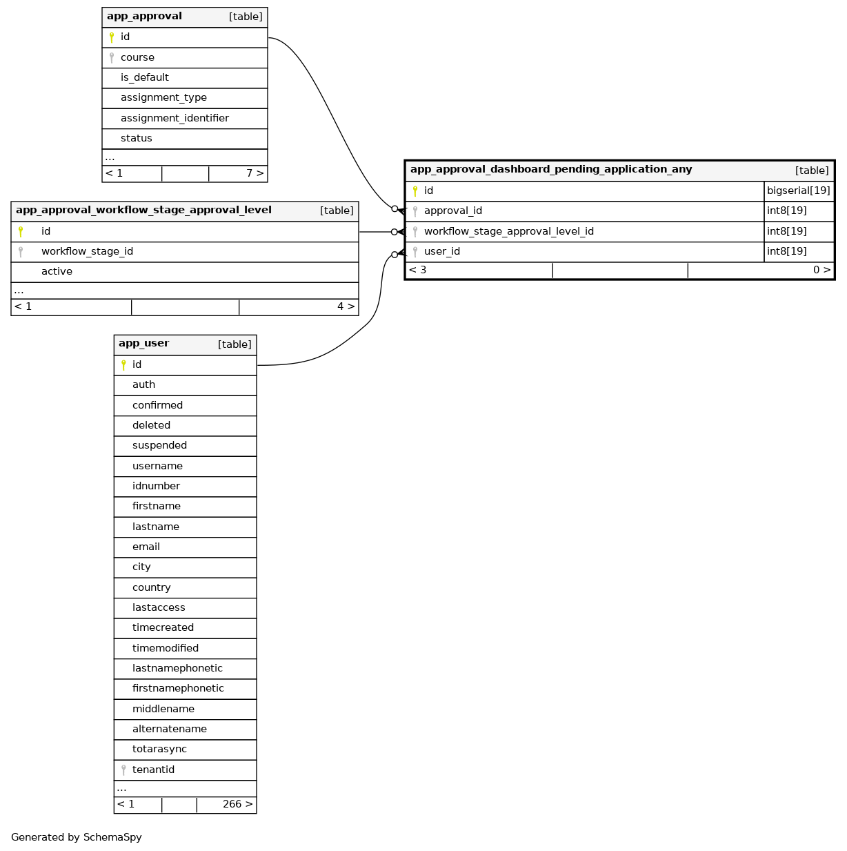 | app_apprdashpendapplany_app_ix | Performance | Asc/Asc/Asc | approval_id + workflow_stage_approval_level_id + user_id |