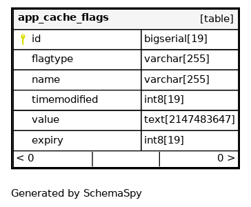 | id | bigserial | 19 | √ | nextval('app_cache_flags_id_seq'::regclass) |