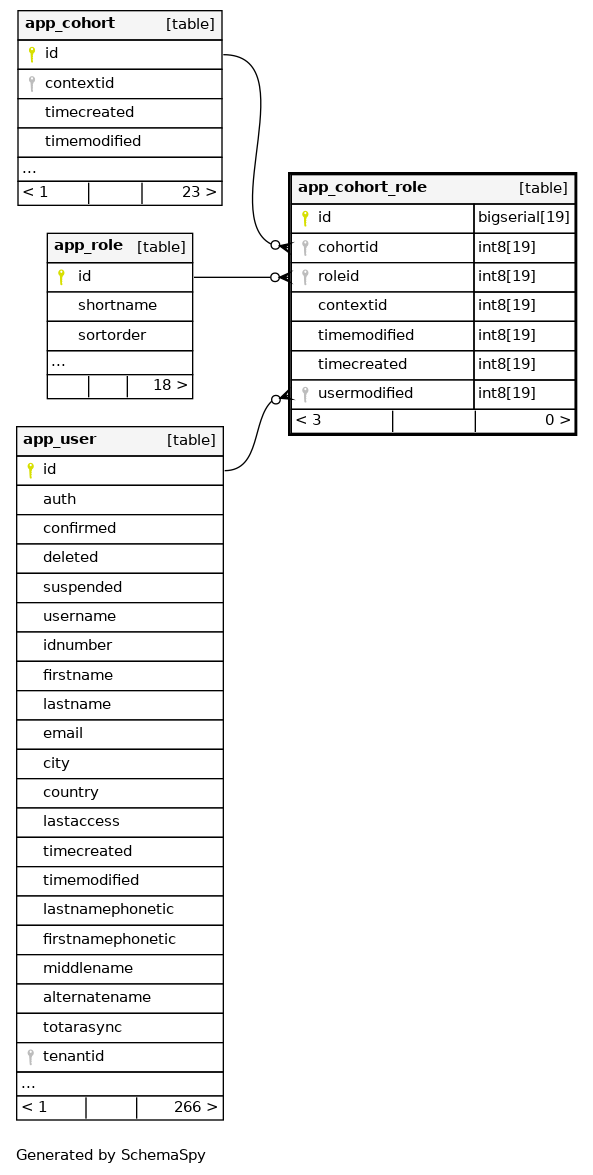 | app_cohorole_cohrolcon_uix | Must be unique | Asc/Asc/Asc | cohortid + roleid + contextid |