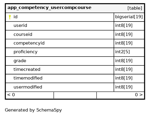 app_compuser_usecoucom_uix Must be unique Asc/Asc/Asc userid + courseid + competencyid