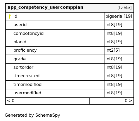 | id | bigserial | 19 | √ | nextval('app_competency_usercompplan_id_seq'::regclass) |