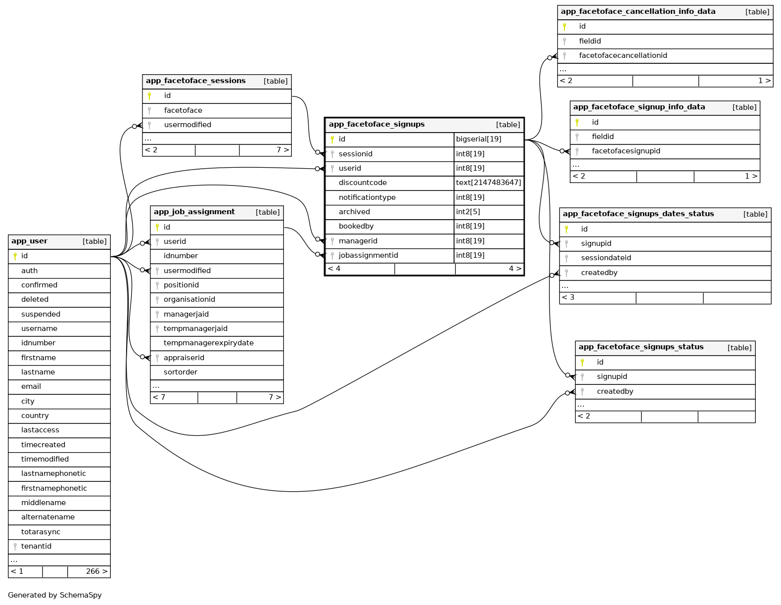 app_facetoface_signups_dates_status.signupid Defined in XML R