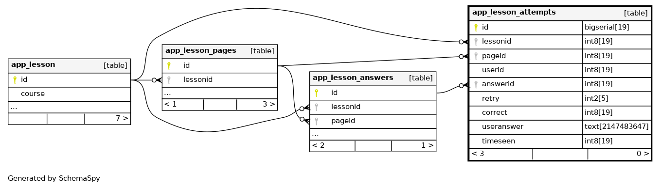 Defines lesson_attempts