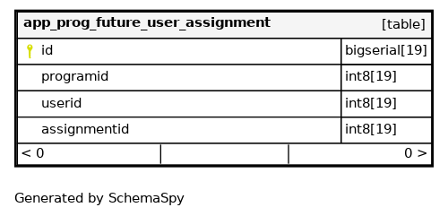 | id | bigserial | 19 | √ | nextval('app_prog_future_user_assignment_id_seq'::regclass) |