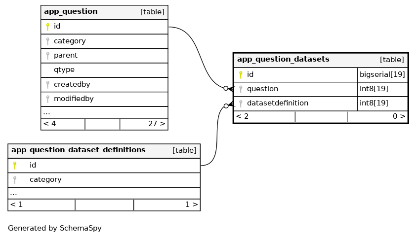 Many-many relation between questions and dataset definitions