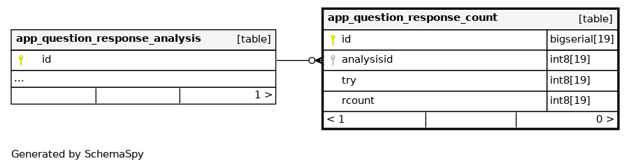 | id | bigserial | 19 | √ | nextval('app_question_response_count_id_seq'::regclass) |