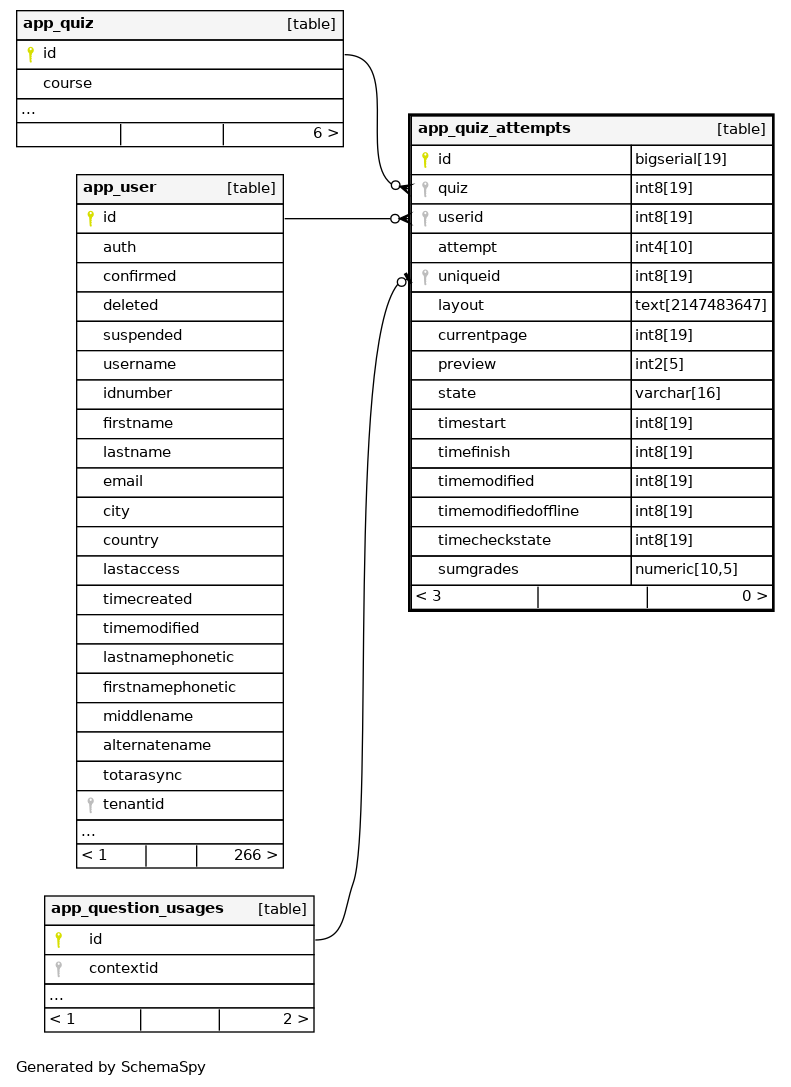 | app_quizatte_quiuseatt_uix | Must be unique | Asc/Asc/Asc | quiz + userid + attempt |