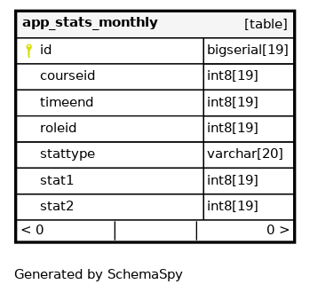 | id | bigserial | 19 | √ | nextval('app_stats_monthly_id_seq'::regclass) |