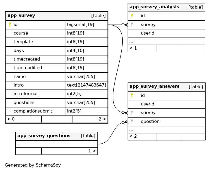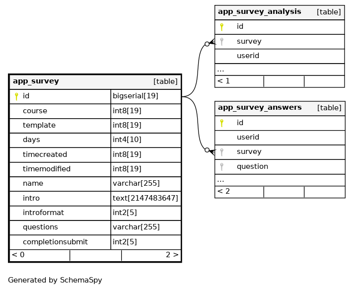 | id | bigserial | 19 | √ | nextval('app_survey_id_seq'::regclass) |