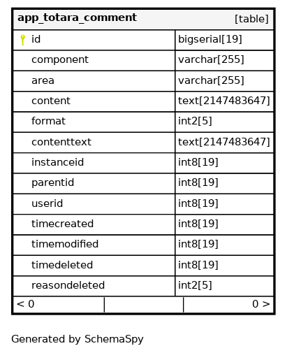 | id | bigserial | 19 | √ | nextval('app_totara_comment_id_seq'::regclass) |