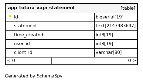 | id | bigserial | 19 | √ | nextval('app_totara_xapi_statement_id_seq'::regclass) |