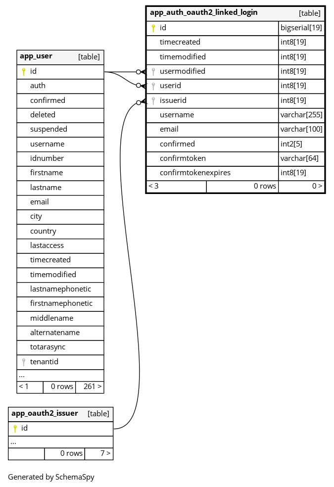 | app_authoautlinklogi_issu2_uix | Must be unique | Asc/Asc | issuerid + userid |